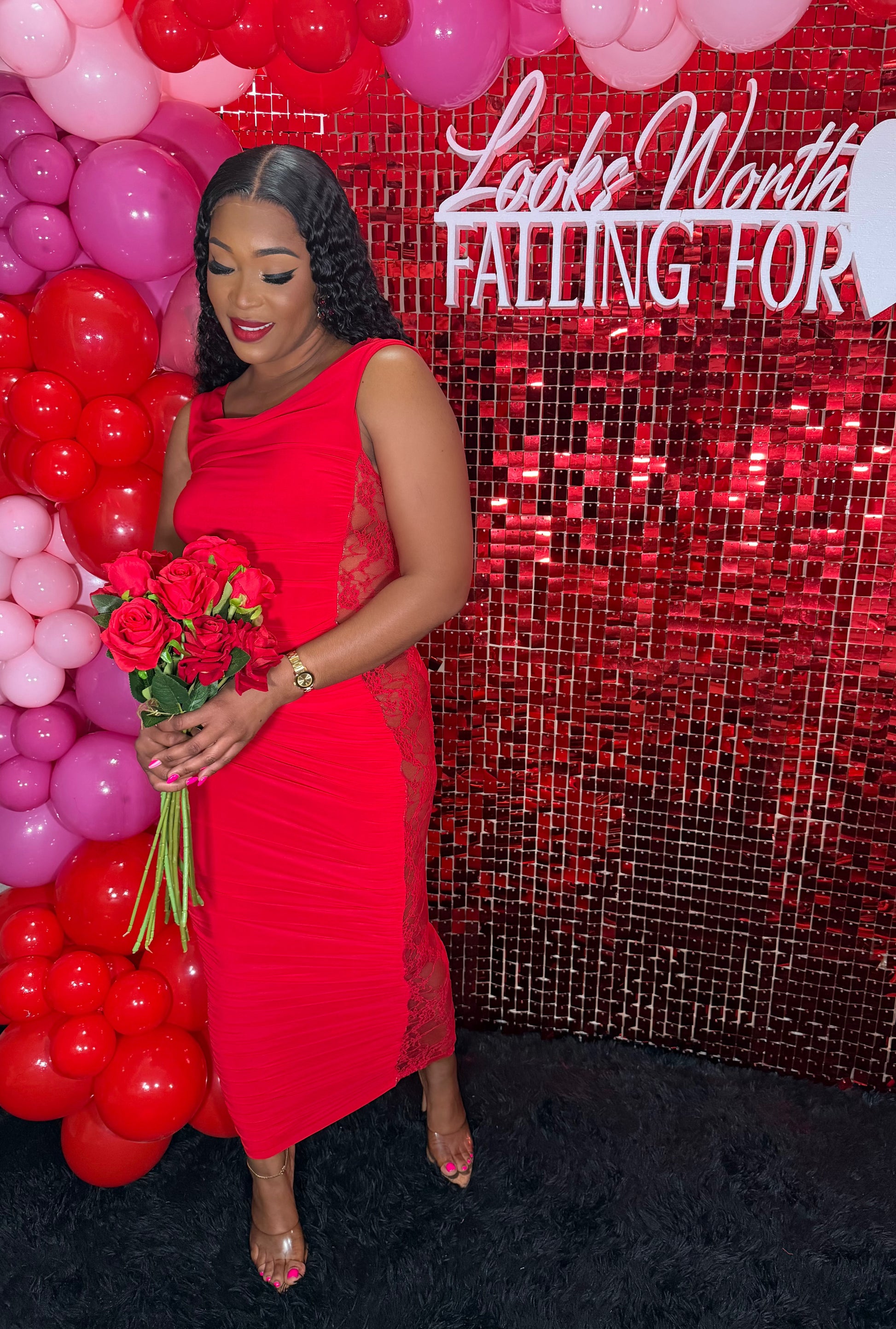 Ruched Lace Maxi Dress